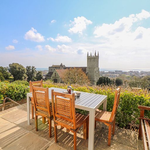 Hythe is between Folkestone and Romney Marsh and the cottage is situated north of Hythe up a hill which gives you wide panoramic views of the area.
